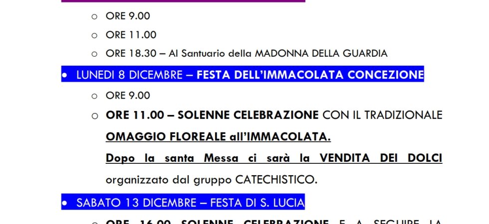 AVVISO 4 Agosto 2025 SI AVVISA CHE, PER TUTTO IL PERIODO ESTIVO E FINO A NUOVA COMUNICAZIONE, LE SANTE MESSE DELLA DOMENICA SARANNO CELEBRATE...