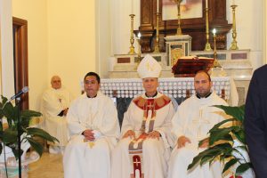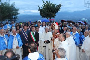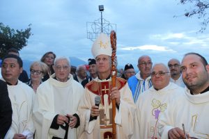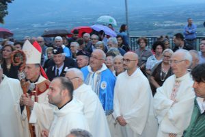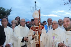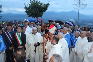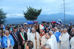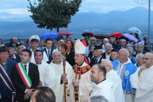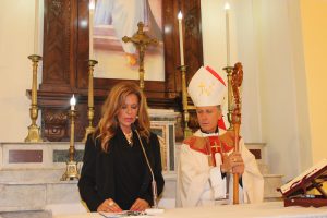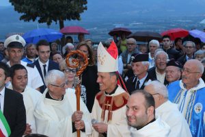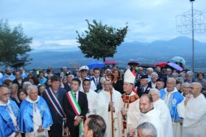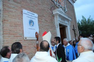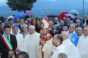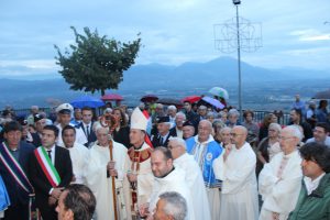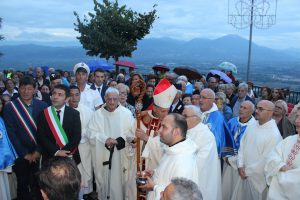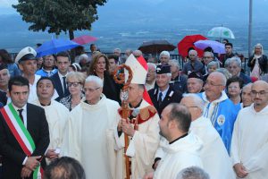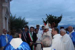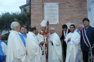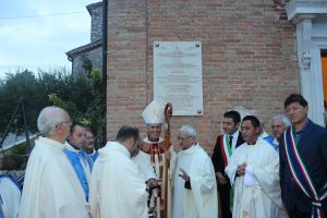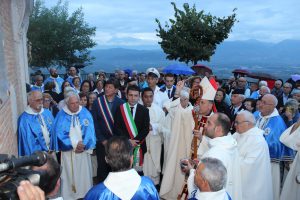 Il vescovo Gerardo Antonazzo ha scoperto l’epigrafe celebrativa in occasione del primo anniversario del “Giubileo Straordinario” del Santuario della Madonna della Guardia. L’evento è stato aperto, poco prima delle 18, con l’accoglienza del vescovo Gerardo da parte dei parroci don Antonio e don Aurelio Ricci, del vice sindaco Paolo Fallone e degli assessori Bortone e Toti. Terminato questo breve momento è iniziata la celebrazione Eucaristica presieduta dal vescovo Gerardo che, unitamente ai parroci don Antonio e Aurelio, hanno elevato al Signore Gesù, per intercessione della Vergine SS. della Guardia, una preghiera di lode per questa speciale grazia che proseguirà, in modo perpetuo, con i tanti benefici spirituali per effetto del Decreto di Aggregazione con la Basilica di San Giovanni in Laterano. Durante l’omelia il Vescovo ha infatti sottolineato, alla luce del Vangelo, “l’infinita misericordia di Dio pronto, sempre, ad accogliere i suoi figli a braccia aperte”. La celebrazione si è conclusa con la benedizione del Vescovo che ha esteso all’intera comunità. La Santa Messa è stata animata dalla Corale Parrocchiale diretta dalla maestra Clara Lombardi e dal professor Marco Farina, mentre la parte audio e Tv parrocchiale è stata curata da Michele Antonelli e Rocco Stracqualursi. È stato, per tutti, un momento di aggregazione nel quale condividere il dono del Giubileo Straordinario che rimarrà impresso nel cuore di quanti lo hanno vissuto come un dono speciale attraverso il quale gustare la misericordia del Padre. Una speciale grazia che proseguirà con i benefici concessi, in modo perpetuo, dal Decreto della Penitenzieria Apostolica che aggrega il Santuario della Guardia alla Basilica Lateranense. Tutto questo grazie all’impegno dei parroci don Antonio e don Aurelio, del priore della “Pia Congregazione Vergine SS. della Guardia”, Lello Di Santo e, alla speciale ricerca, condotta dal dottor Marco Sbardella. Il tutto approvato dal Vescovo Gerardo Antonazzo che segue con particolare benevolenza la Comunità di San Giovanni Incarico. La cerimonia dello scoprimento della lapide celebrativa si è tenuta a termine della Santa Messa dopo la lettura dell’epigrafe da parte della presentatrice Paola Delli Colli per mano del vescovo Gerardo Antonazzo e del vice sindaco Paolo Fallone. Conclusa la breve cerimonia il vescovo Gerardo ha benedetto la storica epigrafe e tutti i presenti. Per la speciale occasione ha prestato servizio la banda musicale Vincenzo Bellini diretta dal maestro Gianfranco Ricci.