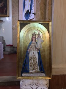 Il pannello in legno sul quale è stata raffigurata l’immagine della Madonna della Guardia si può ammirare nella Chiesa parrocchiale e, precisamente, nella cappella del Santissimo Sacramento dove è stato collocato. Il dipinto, consegnato ai Parroci don Antonio Ricci e don Aurelio Ricci, è stato donato dall’artista toscano Renzo Murtas al quale, i Parroci, hanno espresso la loro gratitudine a nome dell’intera Comunità. I Parroci accettando la donazione hanno benedetto, durante una solenne celebrazione, il dipinto mariano oggi esposto alla pubblica venerazione. Un opera, questa, che evidenzia lo splendore della Vergine della Guardia grazie al sapiente tocco di pennello del maestro Murtas evidenziando, peraltro, il suo legame alla comunità sangiovannese che, da oltre un millennio, venera il miracoloso simulacro mariano. Il pittore Renzo Murtas è nato a Suvereto (LI) nel 1957 ma vive a Massa Marittima in provincia di Grosseto. Artista autodidatta ha partecipato a numerose mostre conseguendo importanti riconoscimenti. Mostrando una particolare tendenza impressionistica si dedica, in modo prevalente, alla raffigurazione del paesaggio Toscano prediligendo la pittura ad olio con pennello. Una pittura di getto e cromaticamente corposa che segna il carattere portante della sua tecnica. Ora, anche la comunità sangiovannese, potrà ammirare la qualità e gli elementi suggestivi creati dal pittore Murtas presenti anche nella sapiente raffigurazione della Madonna della Guardia, eseguita con tecnica mista e foglia similoro su pannello di legno.