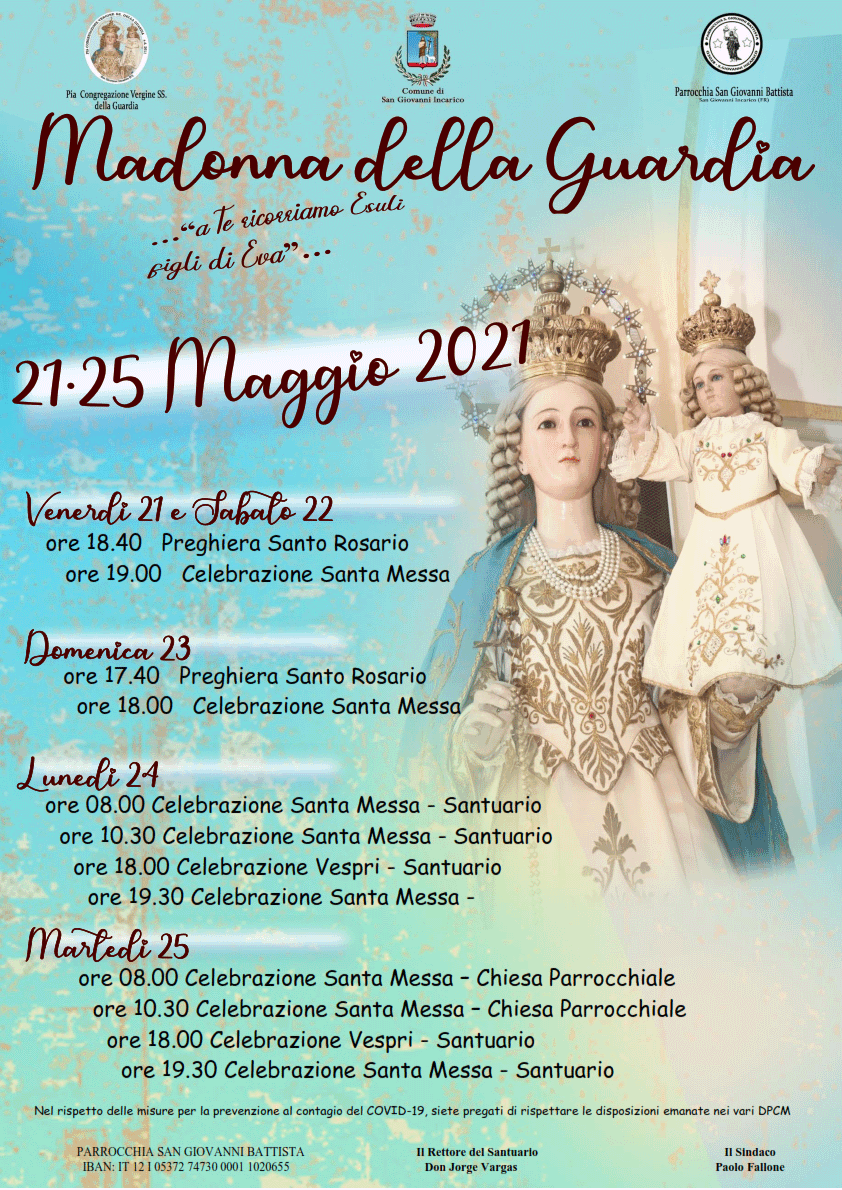Anche quest’anno, per il perdurare della pandemia in corso, la festa in onore si Maria S.S. della Guardia si svolgerà solo per la parte liturgica/religiosa.