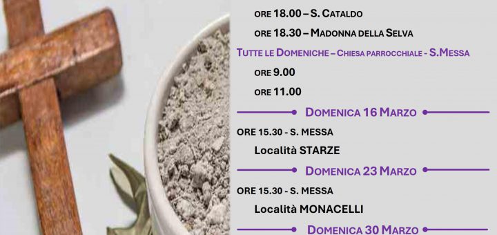 Di seguito il programma per le celebrazioni previste in questo periodo di Quaresima.