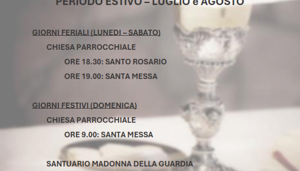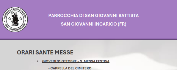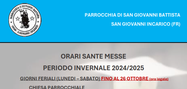 PARROCCHIA S. GIOVANNI BATTISTA S. GIOVANNI INCARICO ( FR ) Si comunica alla comunità parrocchiale il seguente orario per le Sante Messe dal 06/08/2024 al...
