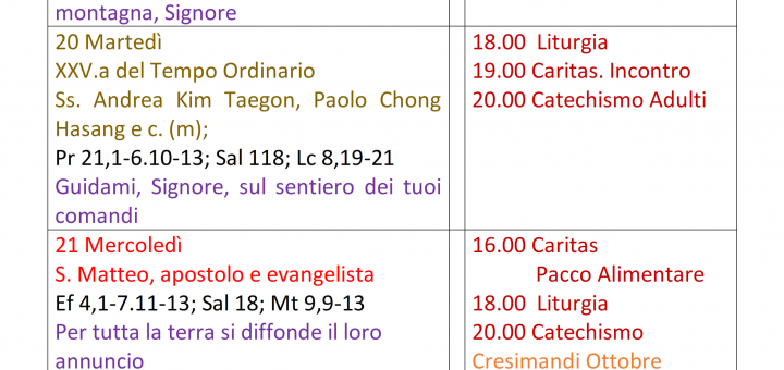 Con la fine delle vacanze e l’inizio di questo bellissimo mese di Settembre, le attività parrocchiali stanno riprendendo il loro normale corso. Molto bella la...