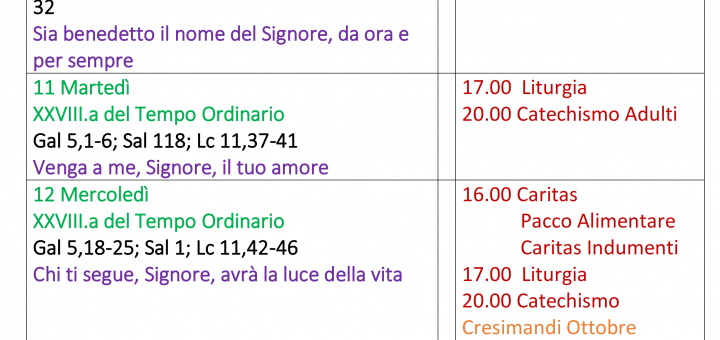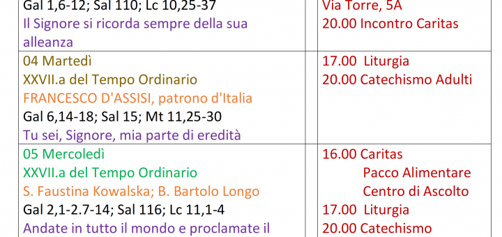 Eccoci di nuovo al consueto programma settimanale delle attività parrocchiali. Da segnalare: Lunedi 26, il Convegno Diocesano che si terrà ad Isola del Liri alle...